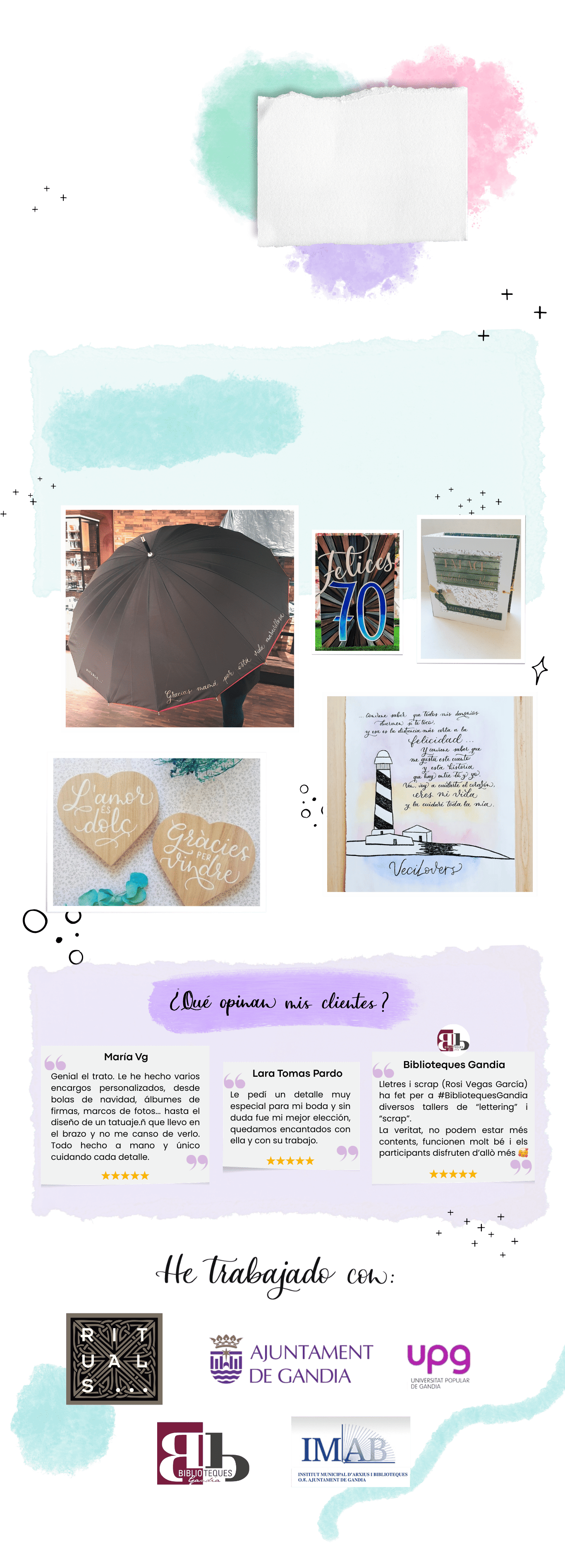 Con mi caligrafía hecha a mano, un toque de acuarelas y la técnica del scrap, doy vida a creaciones que cuentan tu historia.